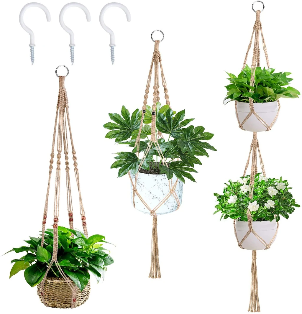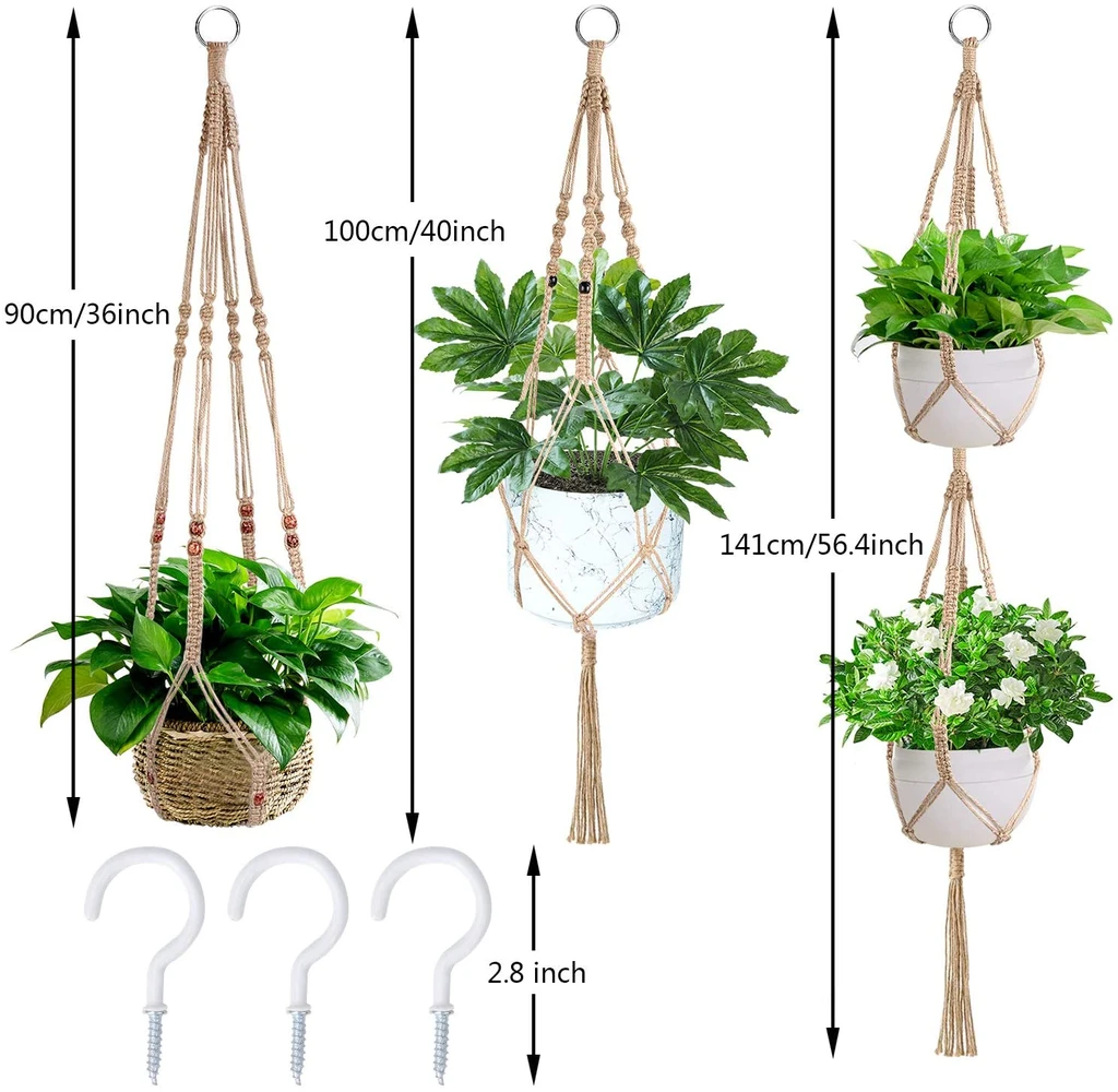 PACKAGE INCLUDES - 3 pcs plant hangers, with wood beads decorative, 3 pcs ceiling hooks. It is convenient for you to hang plants anywhere to add some sweet and beautiful atmosphere to your home.
