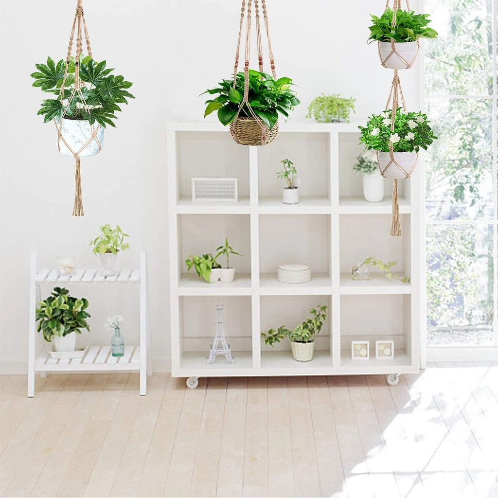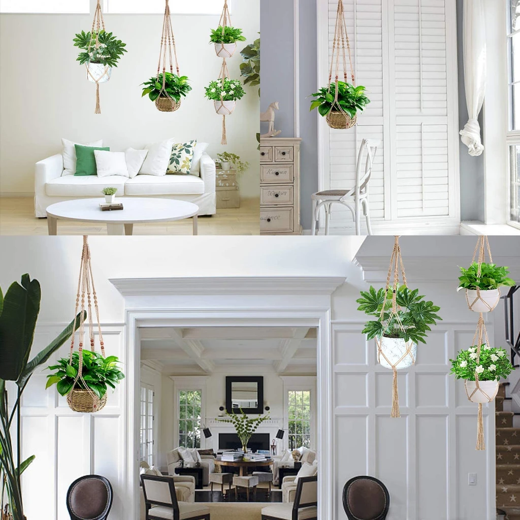 PREMIUM MATERIAL - Made of natural jute, wood beads, environmentally friendly and pollution-free, to hold up the beautiful plant pot symbolizing vitality, make the house one step closer to nature.