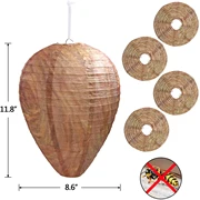 TRUE TO NATURE NEST - 4-Pack of durable paper-like artificial wasp nests constructed from a weather resistant cotton and bamboo fiber blend, each hanging eco-friendly wasp deterrent measures 8.5 inches in diameter with a height of 11 inches.