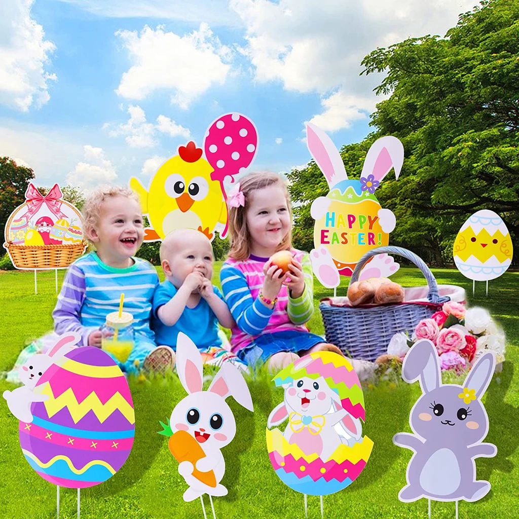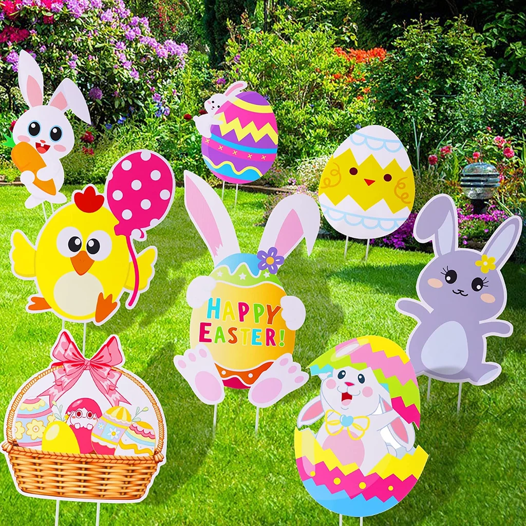 Happy Easter Yard Decoration: Our colorful Easter yard signs contain 8pcs signs with unique and cute designs, including Easter eggs sign, bunny and eggs sign, chick in egg sign, bunny egg basket sign and Happy Easter sign. They are eye-catching and adorable for outdoor decorations. Add more fun to your Easter!