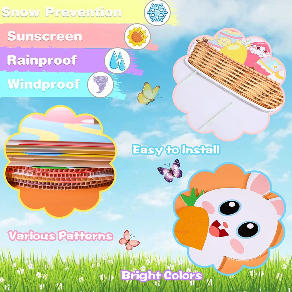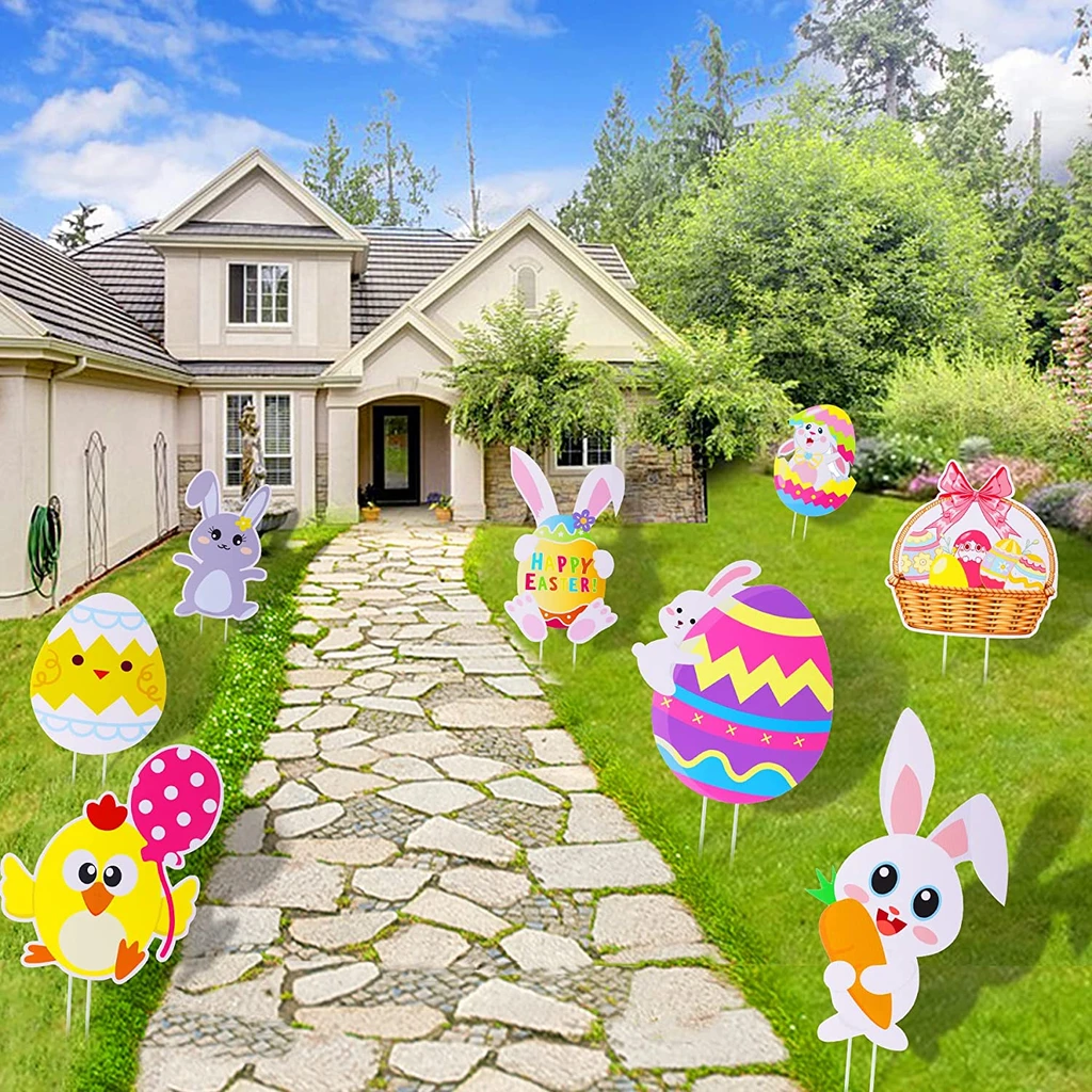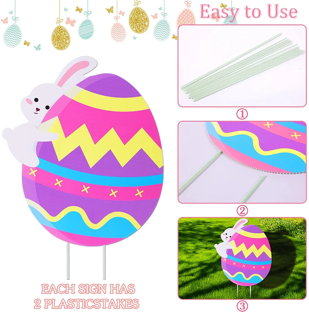 Easy to Set Up: Each Easter outdoor decal yard sign is equipped with 2 plastic stakes. Simply insert the plastic stake into the holes of the sign, and then insert them into the ground of the lawn for display. Then you can turn your yard or lawn into a fun and cute Easter memory.