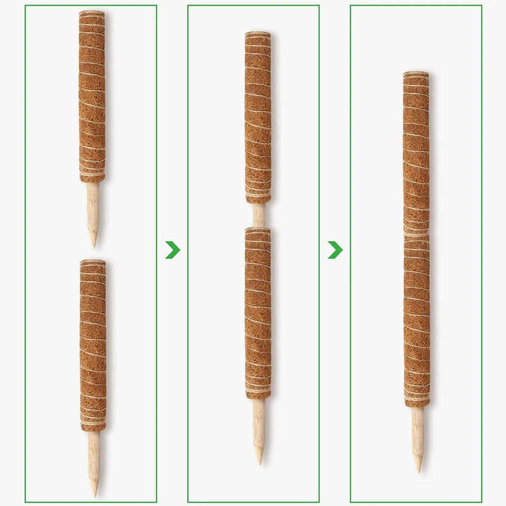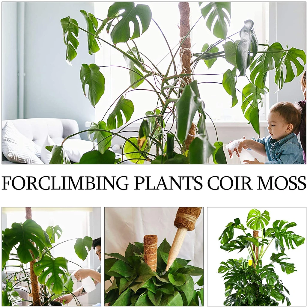 PREMIUM MATERIAL : This moss sticks for indoor plants climbing is made of natural coconut palm figs, reusable & environmental-friendly, which is safe for your plants. It help plants maintain the water and nutrition for their better growing.