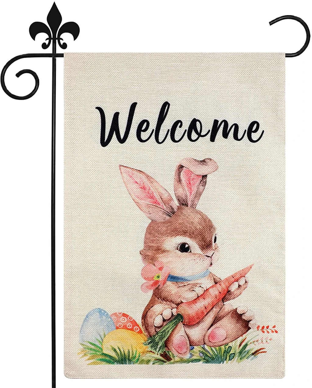 Package Includes: Only 1 piece of 12 x 18in Easter garden flag (not include flagpole or stand). Features: The sleeve hanger fits for standard banner/flagpole or stand.
