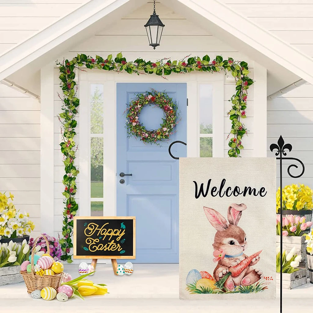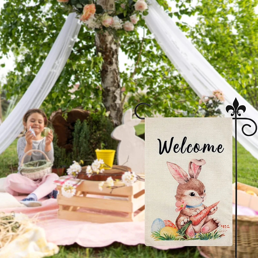 Suitable Decoration for Any Scene: Decorate your garden with this unique personalized Easter garden flag. This will be the ideal decoration to welcome guests home. Easter yard flags are suitable for gardens, backyards, lawns, courtyards, porches, terraces, balconies, terraces, balconies.