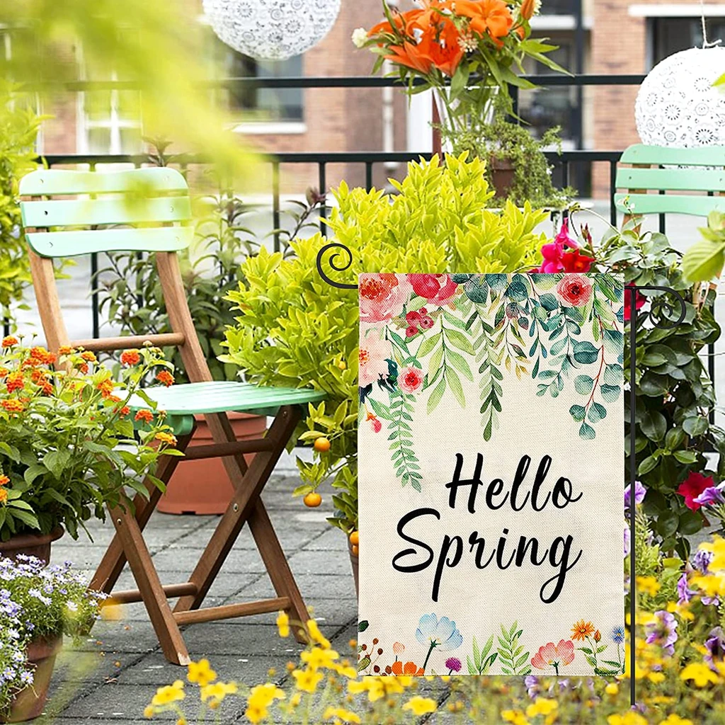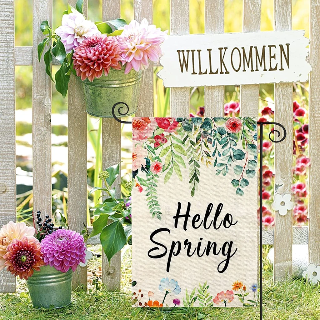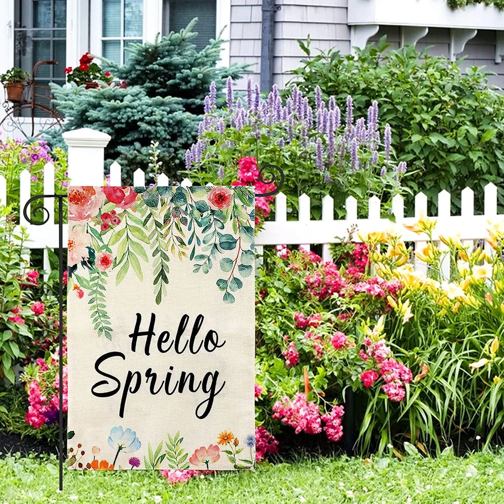 Quality Burlap Material - Our spring yard flag is made of natural and durable burlap, it is double stitched all around to improve durability. The Hello Spring garden flag will become a durable and cute decoration for your spring and summer yard, which will always be vivid!