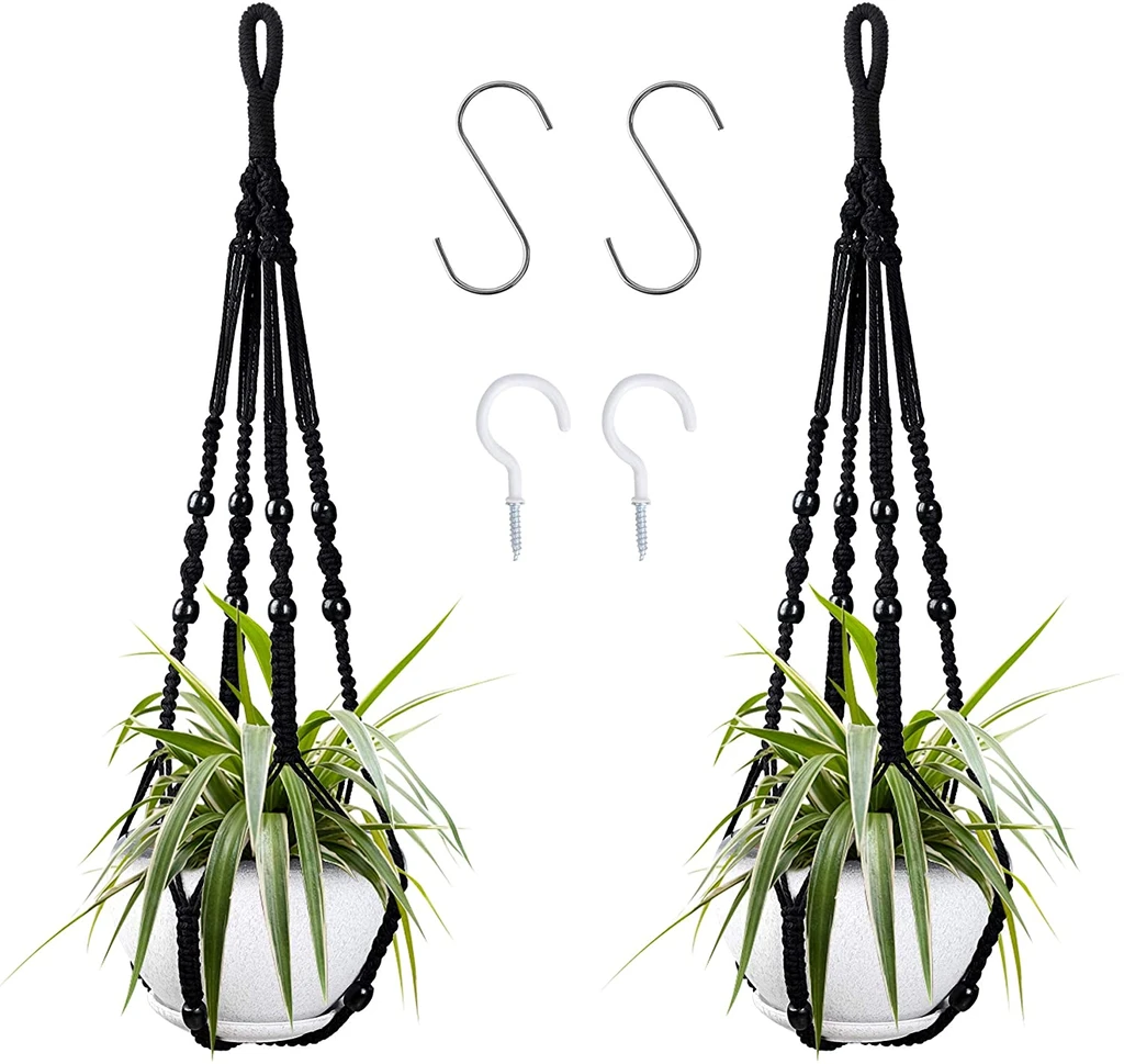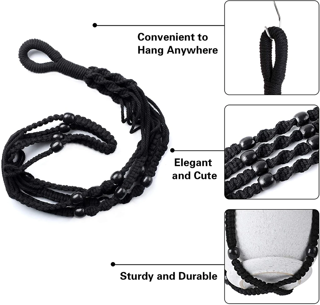 PREMIUM MATERIAL - Made of natural black cotton rope, green and pollution-free, to hold up the beautiful plant pots symbolizing vitality, make the house one step closer to nature.
