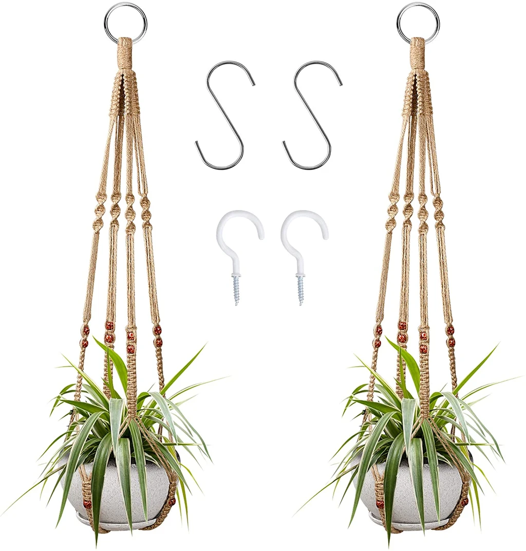 PACKAGE INCLUDES - 2 pcs plant hangers, 4 pcs hooks. It is convenient for you to hang plants anywhere to add some sweet and elegant atmosphere to your home. It also keep your plants out of your pet's reach or as a space saver.